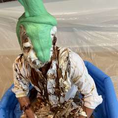 MessyMegan got dunked by Pieman Si in a huge slime dunk tank