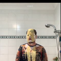 M4travels was surprised by messypup97 with a big sloppy cream pie to the face